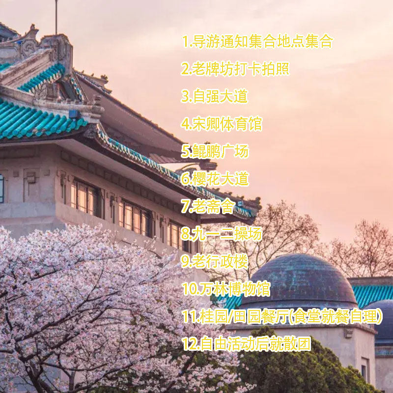 武汉大学樱花季实行限流预约制,普通游客难以自行入校。本产品已包含官方进校预约资格,差旅客人无需操心繁琐申请流程,凭订单即可顺利进入核心赏樱区,省去自行排队或被拒之门外的尴尬,真正实现‘说进就进’。