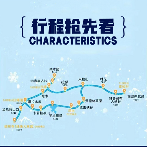 6天5晚的行程长度精准匹配现代差旅者的碎片化假期——可利用周五至下周三的时间窗口,或结合年假灵活安排。从拉萨始发终回,减少异地返程困扰;每日车程科学分配,避免过度疲劳。这种‘即插即用’式设计,让繁忙职场人无需复杂规划即可享受完整藏地体验。