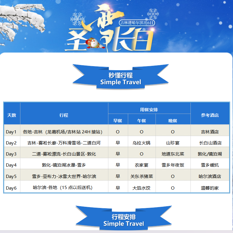 6天5晚的行程设计充分考虑差旅人士的时间碎片化特点,前两日可灵活用于处理工作事务,后四日集中游玩长白山天池、冰雪大世界、万科滑雪场等核心景点。机票+酒店+门票全包,减少决策成本,让您在有限假期中最大化体验价值,告别‘赶路式旅游’。