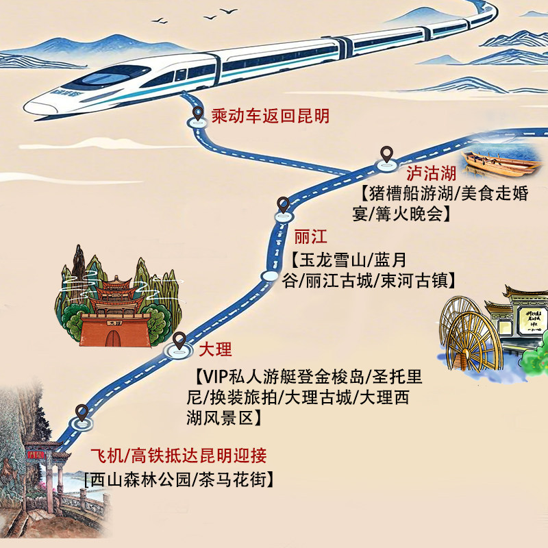 本线路专为差旅人士设计,从昆明便捷出发,无缝衔接大理、丽江及泸沽湖三大热门目的地。行程安排合理,兼顾高效与休闲,适合在商务间隙或会议结束后开启一段深度度假之旅。8日纯玩小团模式,避免大团拥挤,确保每位旅客拥有专属体验空间,同时减少旅途疲劳,提升差旅出行的舒适度与效率。