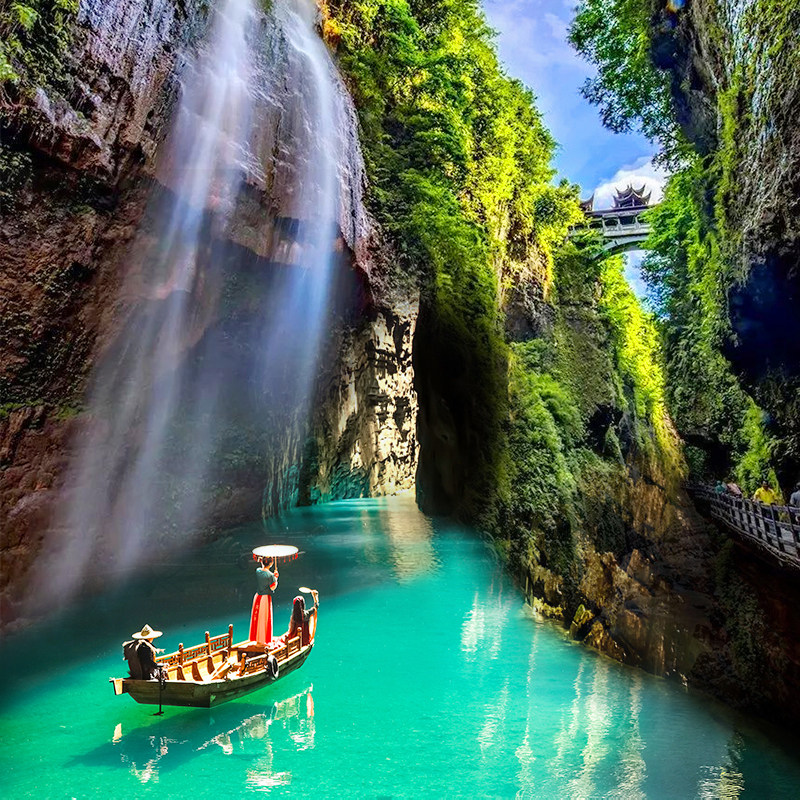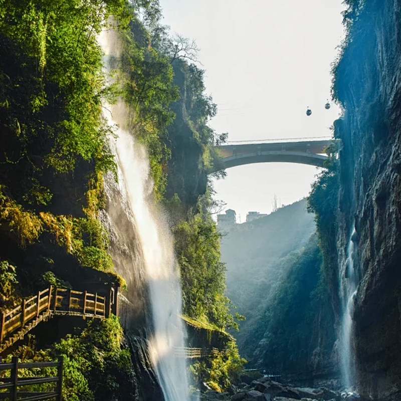 恩施地心谷的幽深地缝、芙蓉镇的瀑布穿镇奇观,均为绝佳摄影取景地。对于需社交展示或内容创作的差旅人士,这些高辨识度景观可轻松产出高质量影像素材,让您的商务社交平台更具格调,实现旅行价值的多维延伸。
