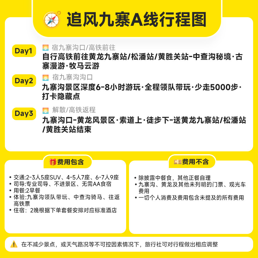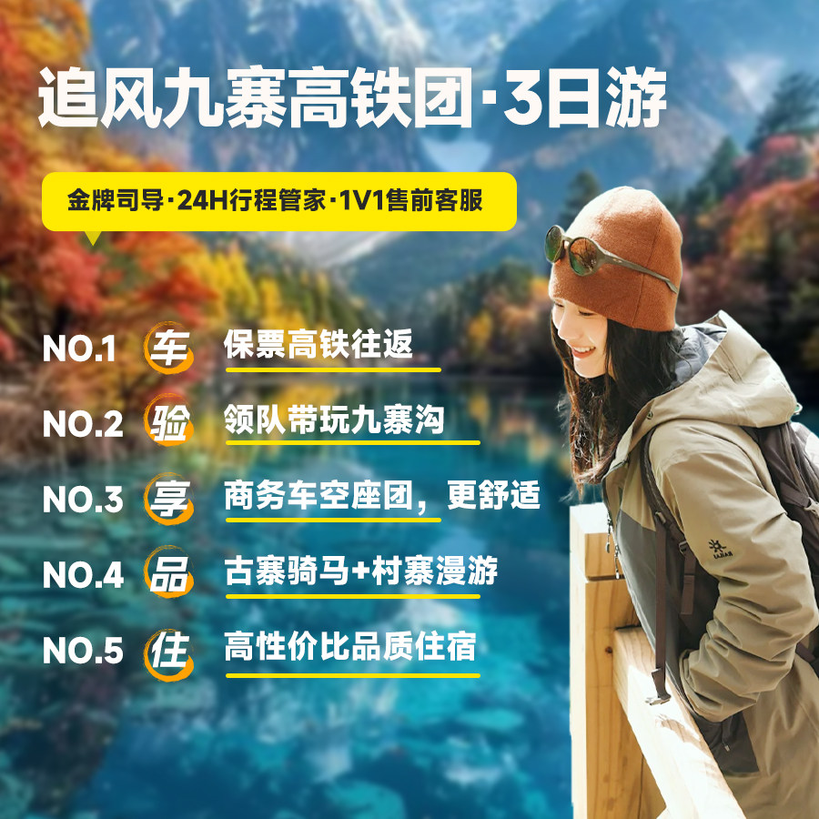 特别包含九寨景区专业旅拍服务,由当地摄影师捕捉您在彩林、碧水、雪山背景下的精彩瞬间。对于忙碌的差旅族而言,无需额外安排拍摄时间,就能获得高质量旅行大片,轻松分享至社交平台或留作纪念。告别自拍杆与路人入镜,让专业影像记录你的高光假期。