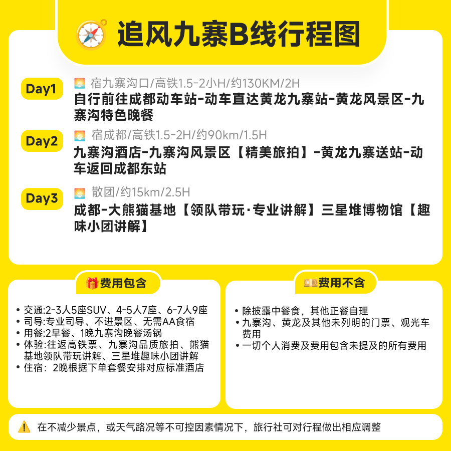 精心设计的3天2晚行程,周五下班出发、周日晚返程即可完整体验,无需额外请假。高铁衔接减少交通冗余,住宿与景点无缝对接,最大化利用有限假期。对于频繁出差、难以规划长假的职场人,这是高效利用周末实现‘说走就走’的理想方案。