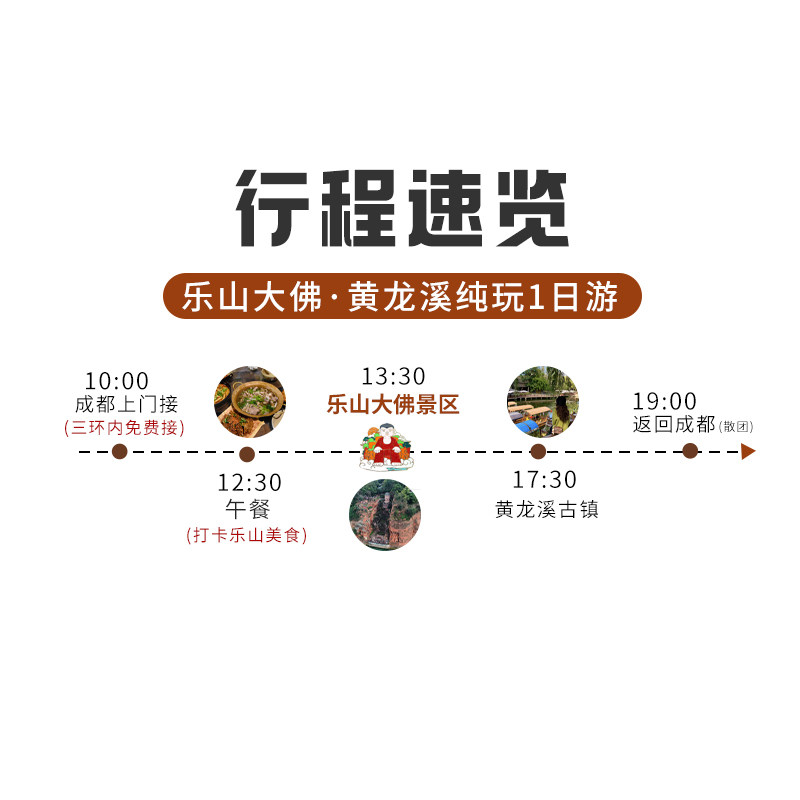 充分考虑差旅人士的时间敏感性,本产品设计为当日往返模式,早出晚归,不影响次日工作安排。从成都市区出发,经高速直达乐山与黄龙溪,全程约8小时,包含交通、门票、导览及简餐。无需过夜、行李轻便,真正实现“工作旅行两不误”的高效差旅度假模式。