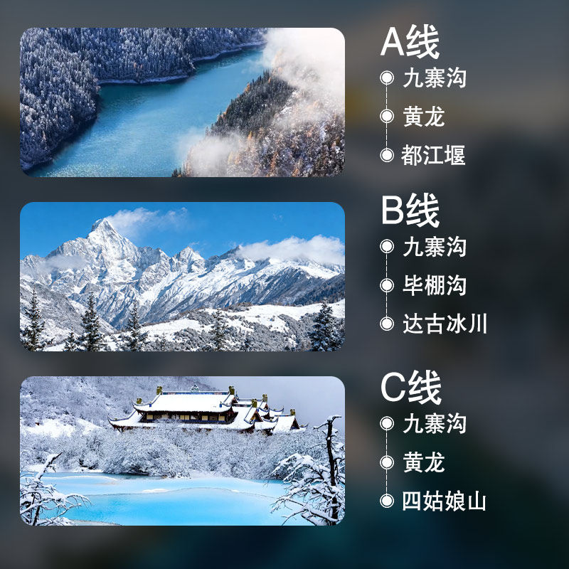 本线路精心串联成都大熊猫基地、毕棚沟彩林、达古冰川与九寨沟碧水,打造“自然奇观+萌宠互动”的复合型主题游。差旅人士可在3天2晚内体验从都市到雪域的生态跨越,满足对多样性景观的探索欲。主题化设计避免行程碎片化,让短暂假期也能收获层次丰富的旅行叙事。