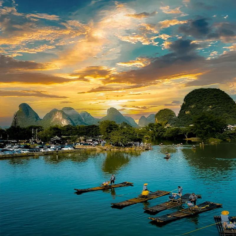 在繁忙差旅间隙,搭乘被誉为‘大漓江三星船’的豪华游轮,沿百里画廊缓缓前行,两岸奇峰倒影、碧水青山尽收眼底。随后体验多人竹筏漂流或静谧单人竹筏,在阳朔遇龙河上感受‘舟行碧波上,人在画中游’的诗意。这一组合不仅放松身心,更成为商务洽谈之外的绝佳谈资与灵感源泉。