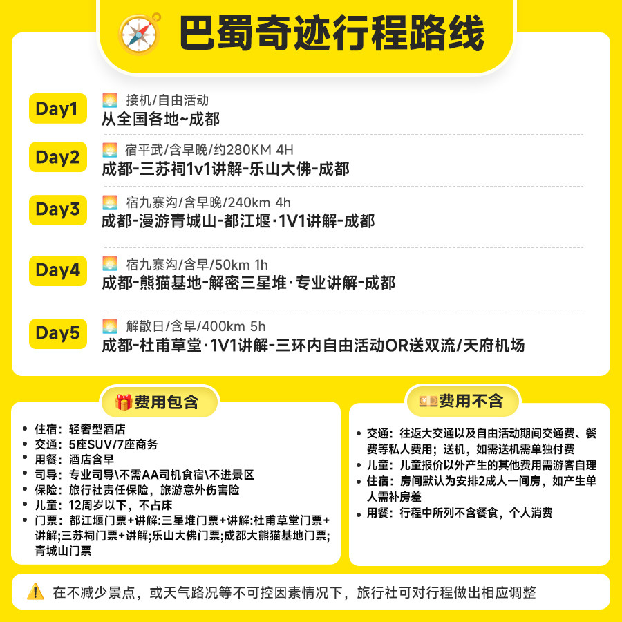 差旅高效度假:成都出发5天4晚,一站式亲子行程