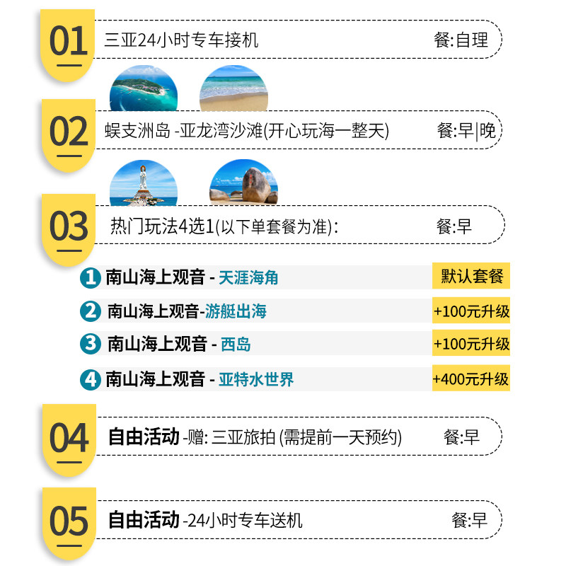 含往返机票海口三亚旅游5天4晚纯玩跟团游亲子海南旅行海景酒店 - 定制游预订
