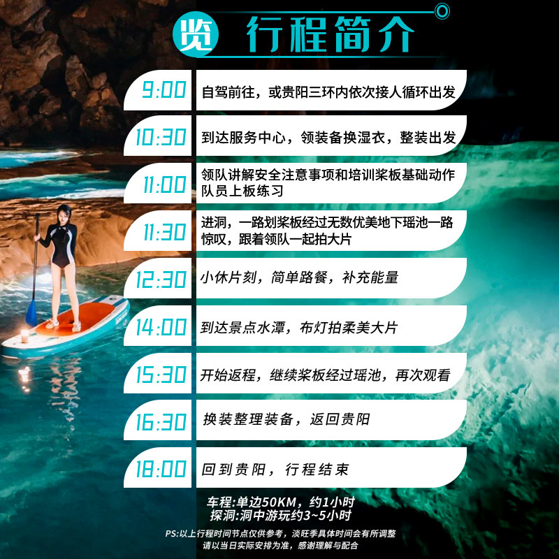 区别于传统观光,本产品将探洞与浆板两大户外元素巧妙结合,打造动静相宜的独特体验。差旅人士可在同一日中既挑战自我(探洞),又放松身心(浆板),满足多元需求。这种创新组合不仅丰富行程层次,更彰显现代差旅者追求效率与品质并重的生活态度。