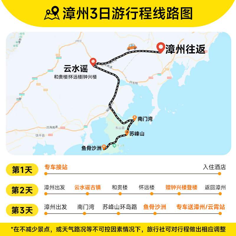 全程聚焦漳州本地精华景点——云水谣、东山岛、鱼骨沙洲均位于漳州市域范围内,无需频繁更换城市或酒店。对于差旅途中希望就近放松的旅客而言,此举大幅减少交通衔接成本与行李搬运负担,真正实现‘下车即游玩’,让短暂假期也能深度而舒适。