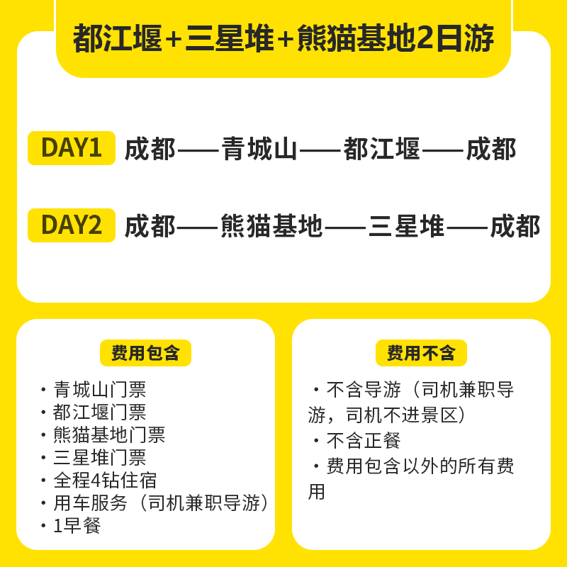 差旅无忧:成都出发2天1晚精品小团,灵活取消政策保障行程