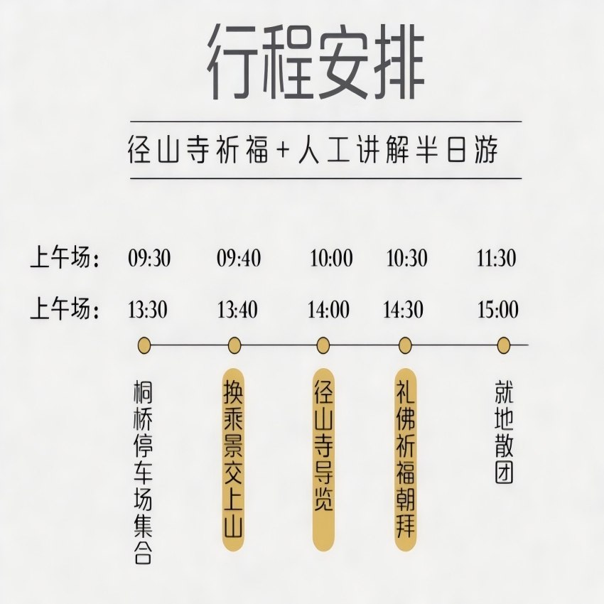 面对高强度差旅压力,一次简短的禅修体验或许胜过数小时咖啡提神。本行程将径山寺的禅修元素融入半日游中,通过导览讲解引导您了解坐禅、抄经、供灯等传统修持方式,并可在指定区域静坐片刻。全程节奏舒缓却不拖沓,既尊重宗教仪轨,又契合现代人快节奏需求。适合希望在差旅中寻找内心平静、缓解焦虑的都市职场人。