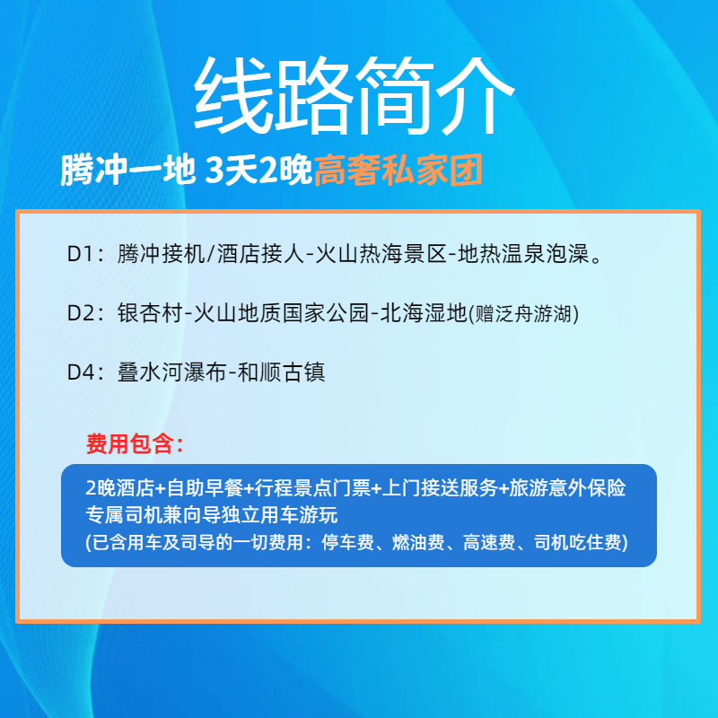 差旅无忧:3天2晚腾冲私家团灵活取消政策保障出行