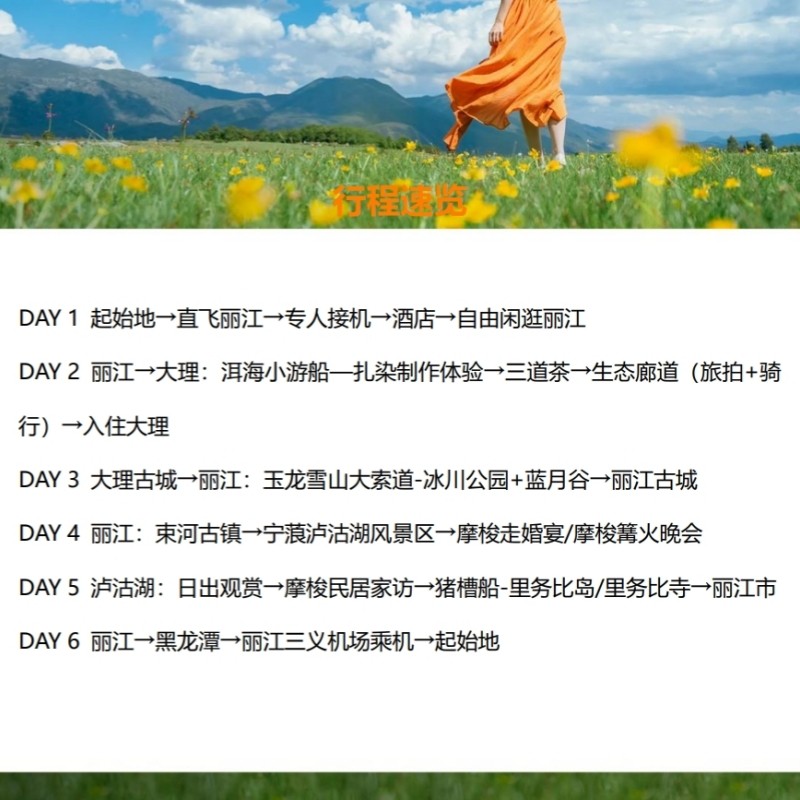 行程包含专业丽江旅拍服务与洱海/泸沽湖乘船游览项目,让您在玉龙雪山背景下定格优雅瞬间,或泛舟碧波之上尽览湖光山色。对于需要社交素材或纪念重要差旅节点的用户,这些高质感影像将成为珍贵回忆,亦可作为企业宣传或个人品牌内容的优质素材。