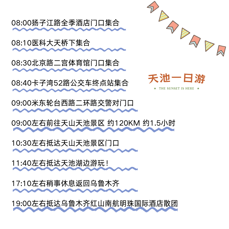 全程从乌鲁木齐市区指定地点集合出发,专车接送直达天山天池景区,省去自行租车、导航或打车的繁琐。对于携带行李或时间紧张的差旅人士而言,这种“门到景”服务极大降低出行门槛,确保您无需额外规划交通,即可轻松享受一日精华游,真正实现差旅与度假的无缝切换。