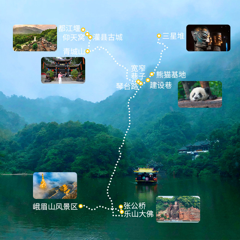 本行程专为差旅人士设计,从成都出发,高效串联乐山、德阳及周边热门景点,包括峨眉山、乐山大佛、都江堰与三星堆等文化地标。全程交通接驳顺畅,节省中转时间,让商务出行之余轻松实现深度度假体验,兼顾效率与休闲,是差旅融合的理想之选。