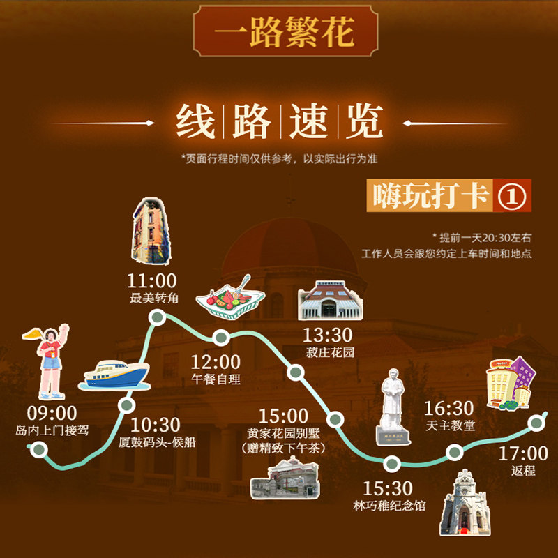 专为商务差旅人士设计,本产品支持1人独立成团,无需拼团等待,极大提升出行效率。无论您是独自出差至厦门,还是临时决定利用空闲时间放松身心,只需提前预约,即可享受专属接驳、船票及景点门票一站式服务。行程紧凑合理,上午出发、傍晚返回,不耽误晚间工作安排,真正实现‘工作度假两不误’的差旅新体验。