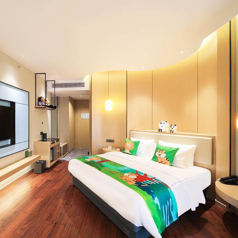 酒店提供精心打造的亲子主题房,从床品到装饰均融入童趣元素,让孩子一入住便沉浸于欢乐氛围。对差旅家长而言,这不仅是一间客房,更是安抚孩子情绪、保障良好睡眠的温馨港湾。即便白天忙于工作,夜晚归房也能收获满满的家庭幸福感。