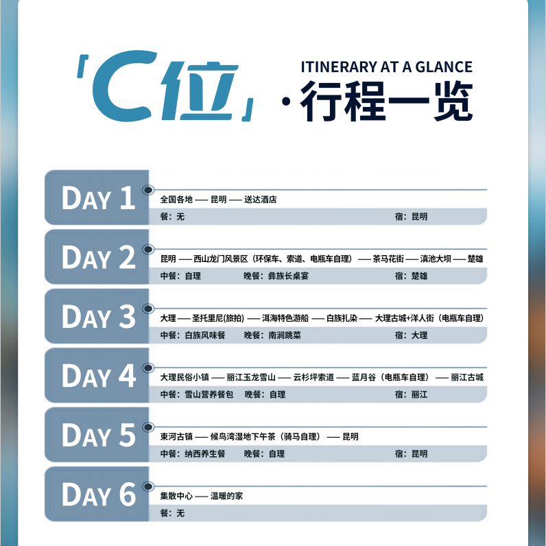 从上海、杭州、苏州、南京等长三角城市,到广州、深圳、珠海、佛山等珠三角枢纽,再到北京、天津等京津冀核心,本产品全面覆盖国内三大经济圈主要差旅出发地。高频航班支持当日或次日抵达昆明,极大降低交通成本与时间损耗。无论您身处哪个商务中心,都能便捷接入这条高品质度假线路,实现‘就近出发、远途放松’的理想差旅模式。