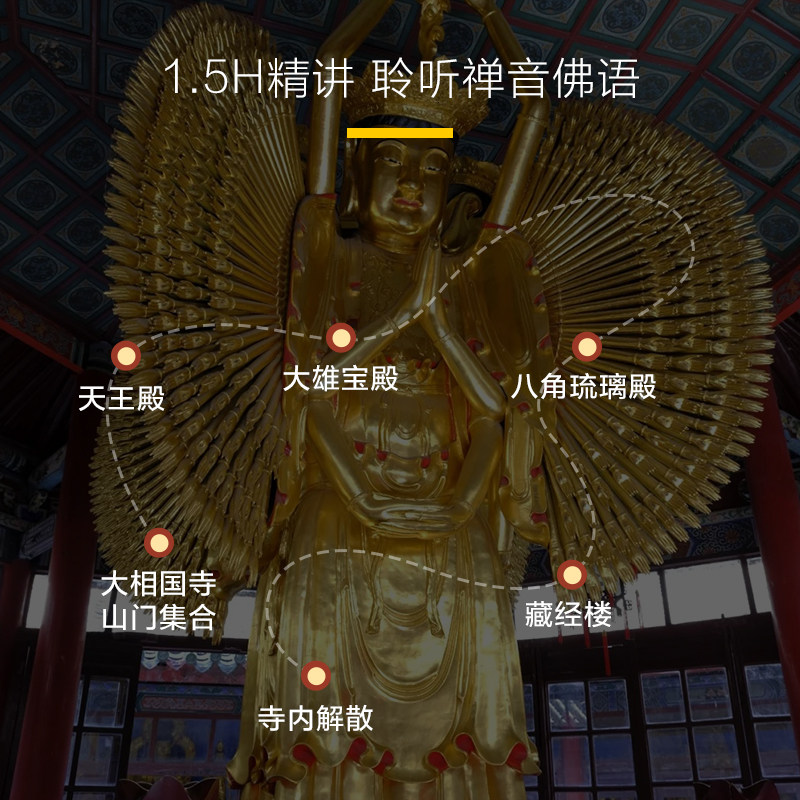 专为时间紧张的差旅者优化,1.5小时行程精准覆盖大相国寺精华区域,包括天王殿、大雄宝殿及八角琉璃殿等核心建筑。专业讲解直击历史脉络与艺术亮点,剔除冗余信息,确保您在最短时间内吸收最大文化价值。这种“快充式”设计完美适配商务人士紧凑的日程安排。
