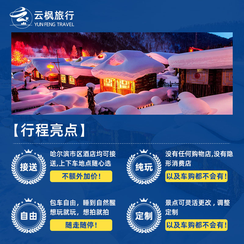 本行程提供专属独立包车服务,特别适合商务差旅人士在紧凑日程中高效安排休闲时光。无需受制于固定发团时间,您可自由决定出发与停留时长,从哈尔滨市区出发直达雪乡或亚布力滑雪场,途中还可根据兴趣临时调整路线。司机兼向导熟悉当地路况与景点,确保安全又省心,真正实现“工作之余,说走就走”的高品质差旅度假体验。