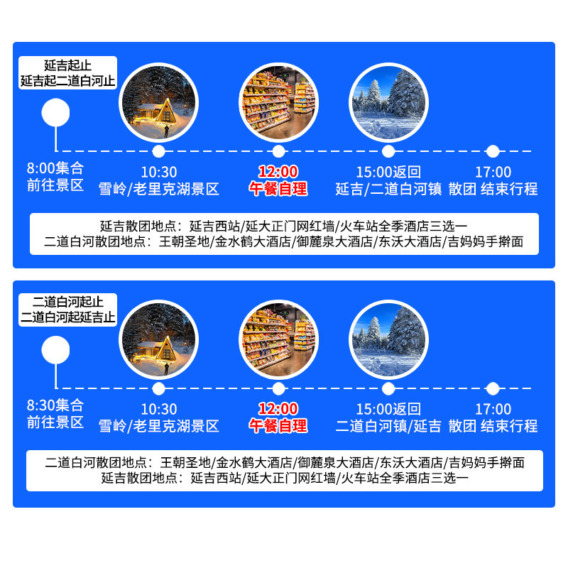 专为差旅人群设计的一日游行程,从延边本地出发,当日往返,无需额外安排住宿或请假。清晨出发,傍晚返回,充分利用碎片化时间,既满足了对冰雪奇观的向往,又不影响次日工作安排。高效紧凑的行程规划,真正实现‘说走就走’的差旅度假新模式。