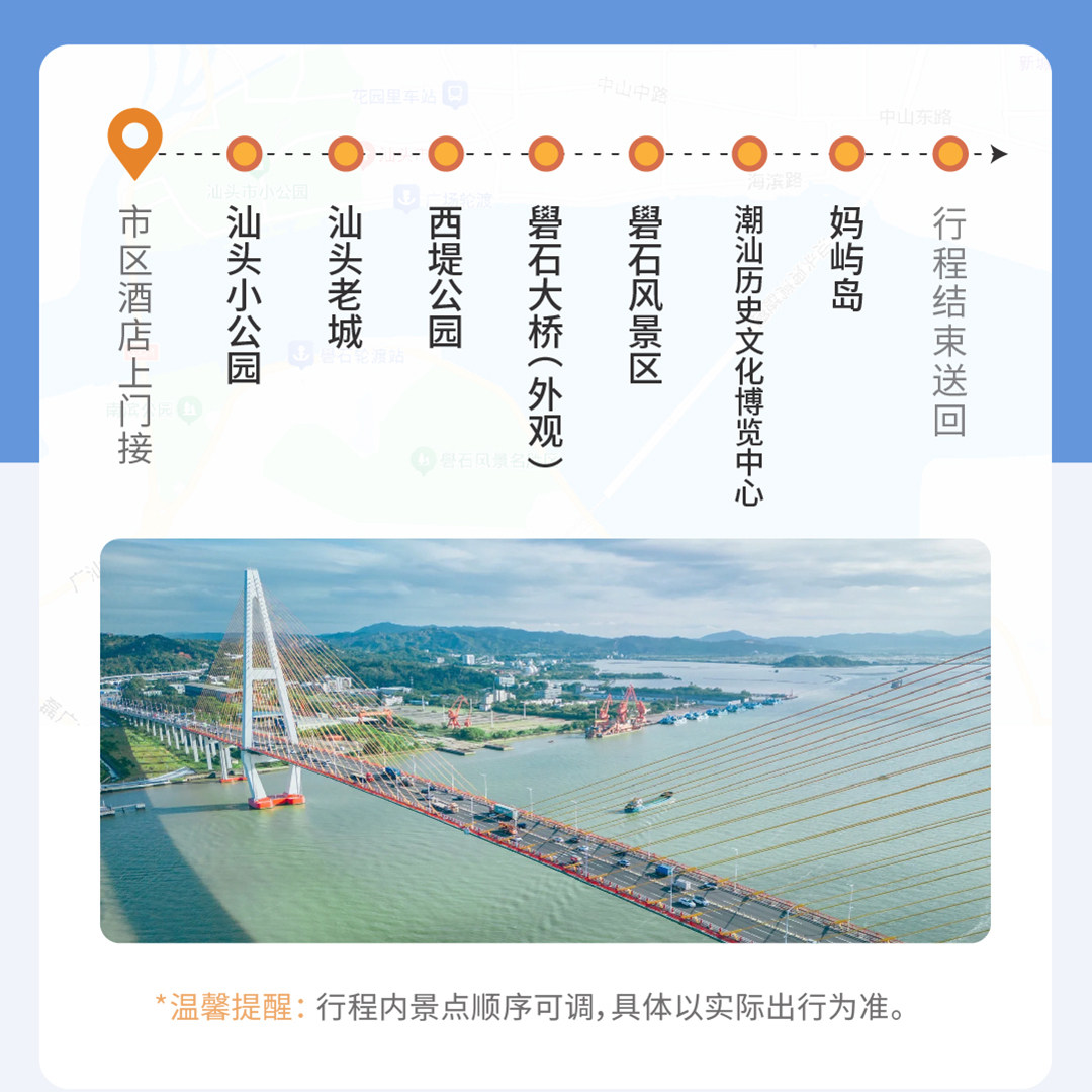 深知差旅人士时间宝贵,本产品承诺0购物店、0隐形消费,所有停留点均为文化景点或自然风光区。您无需应付推销干扰,可专注享受老城骑楼摄影、礐石山徒步、妈屿岛观海等纯粹体验。行程含专业司机兼向导服务,行李随车寄存,真正做到轻装上阵,高效利用每一分钟差旅时光。