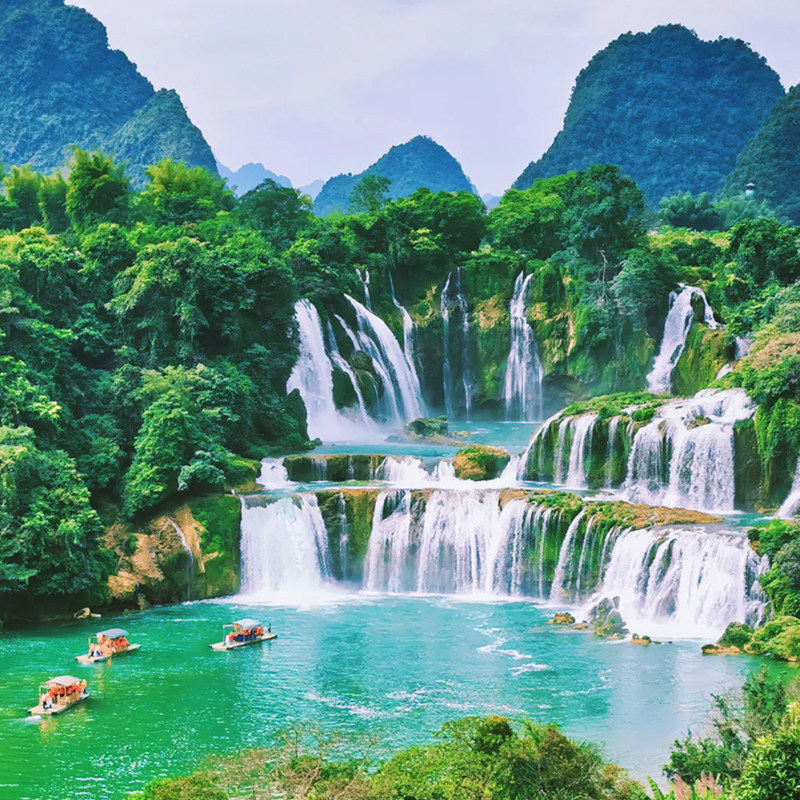 德天跨国瀑布横跨中国与越南边境,乘船泛舟于归春河上,不仅能近距离仰望三级跌落的磅礴水势,还能遥望对岸越南村落,感受独特的边境文化魅力。这种“一脚踏两国”的奇妙体验,为常规差旅增添国际化视野与趣味性。游船平稳舒适,适合各年龄段旅客,是高效利用碎片时间获取深度文化体验的理想方式。