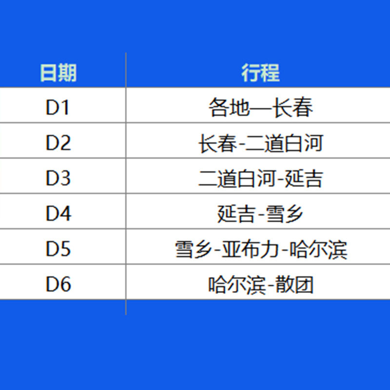 本行程专为差旅人士设计,从长春出发,高效串联延边、牡丹江、哈尔滨等东北热门城市,覆盖长白山、雪乡、延吉等经典景点。全程纯玩0购物,节省时间成本,适合商务出差之余快速切换至度假模式。6天5晚紧凑安排,既满足工作出行需求,又充分体验北国冰雪魅力,是高效差旅与休闲度假的完美结合。
