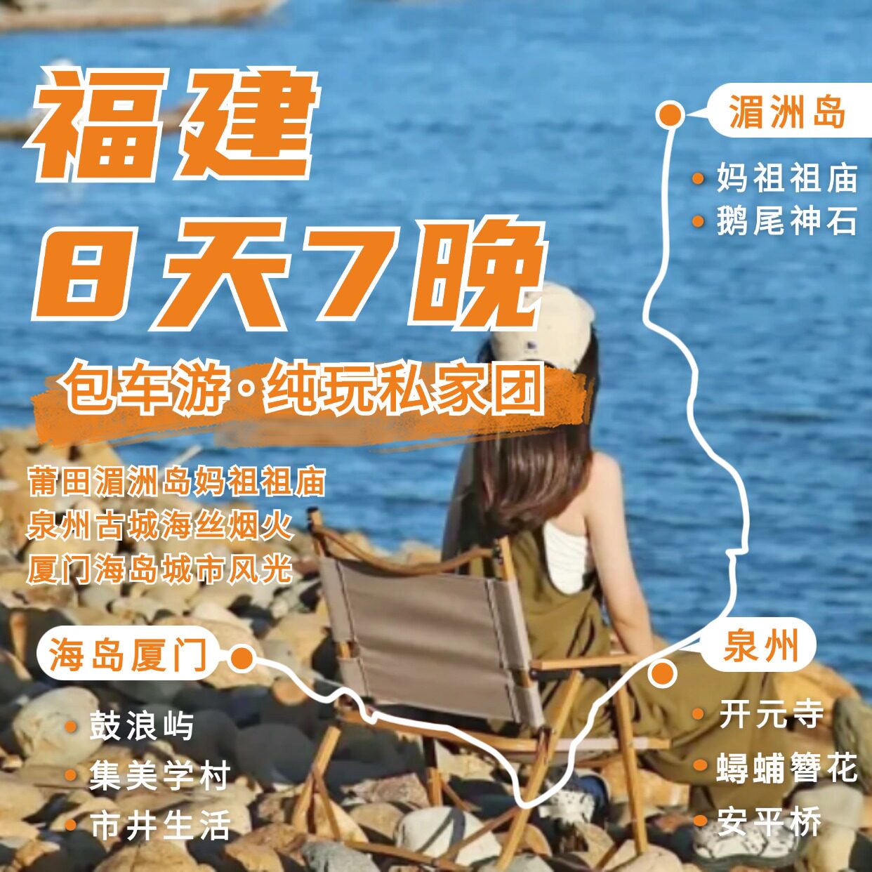 充分考虑差旅者对时间效率的极致追求,本8天7晚行程采用科学环线设计:厦门进、漳州出(或反之),串联莆田湄洲岛、泉州古城、漳州土楼,全程无重复路线。依托福建发达的城际交通,单日车程控制在2小时内,确保每日核心体验不被冗长转场所稀释。高效动线让差旅者在完成工作任务的同时,轻松收获完整度假体验。