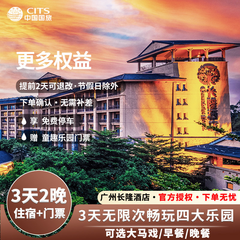 差旅融合亲子度假:3天2晚一站式畅玩长隆三大乐园