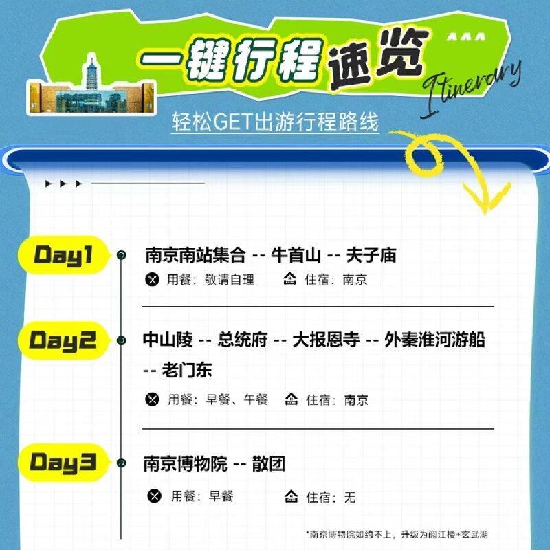 差旅时间优化:3天2晚紧凑行程,覆盖南京核心人文地标