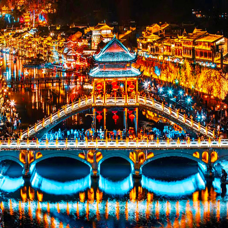 结束白天的商务行程,夜晚的凤凰古城为您开启另一重浪漫世界。沱江两岸灯火阑珊,吊脚楼倒影如画,配合《千古情》实景演出的震撼演绎,让您在差旅间隙彻底放松身心。这种‘日间高效、夜间沉浸’的模式,特别适合希望在有限时间内兼顾事业与生活的现代职场人。