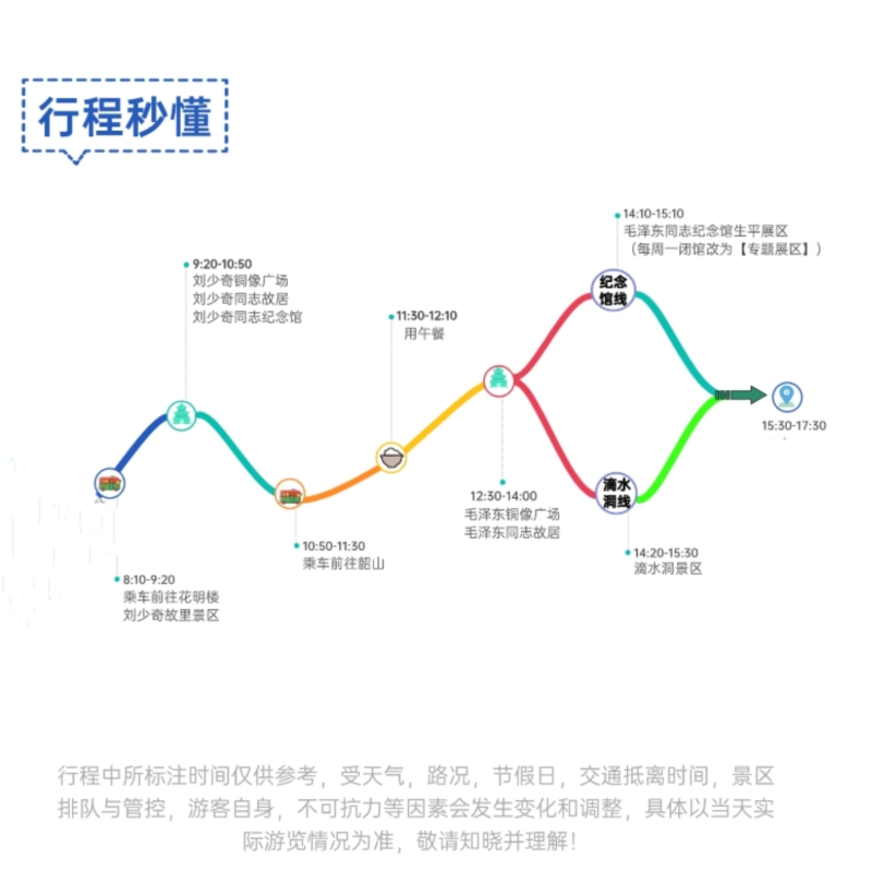 为提升差旅效率,本服务包含韶山景区自驾车通行证,避免排队购票、限行绕路等常见困扰。从湘潭出发自驾仅需约40分钟,配合本地导游接驳,实现“点对点”无缝衔接。特别适合携带行李或需快速往返的商务人士,在有限时间内最大化游览体验,让差旅出行更从容。