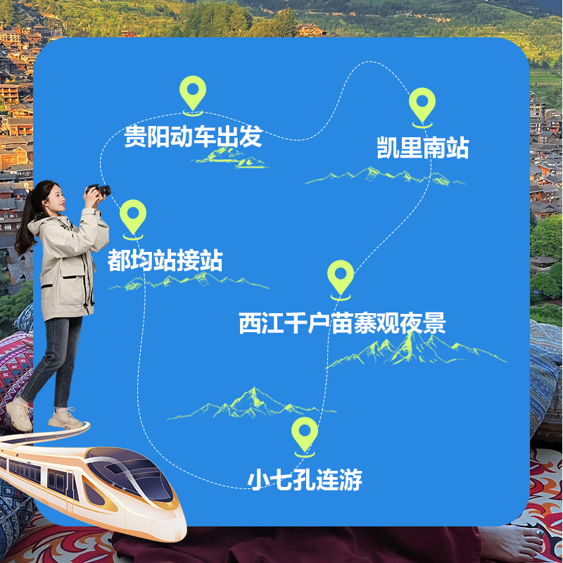 产品精准整合‘摄影游’‘泡温泉’‘千户苗寨体验’等热门标签,满足差旅人群多元化兴趣需求。无论您是想用镜头记录喀斯特地貌的光影变幻,还是在温泉中复盘项目进展,亦或参与苗家拦门酒仪式感受热情待客之道,都能在此行程中一站式实现,让短暂旅程充满个性与记忆点。