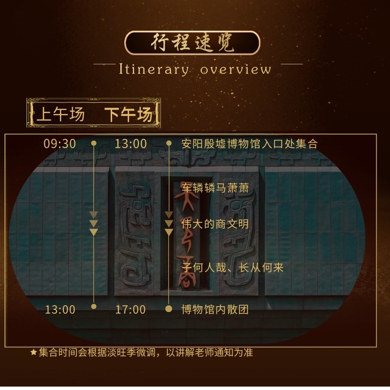 区别于常规城市观光,本产品深度聚焦殷墟宫殿宗庙遗址与博物馆新馆建筑群,将历史遗迹与现代展陈技术结合。差旅者可在短时间内建立对中华文明源头的直观认知,形成独特而深刻的城市记忆点,助力后续商务合作中的文化共鸣。