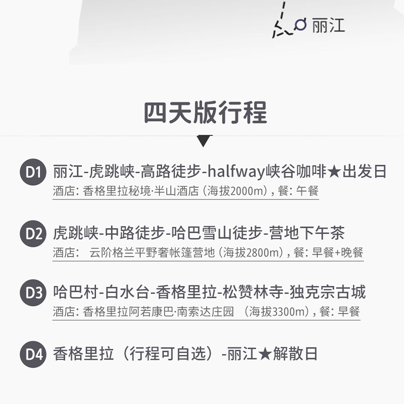 本行程专为差旅人士设计,从丽江出发,高效衔接香格里拉4天3晚深度游。无需中转折腾,全程交通由专业团队安排,节省宝贵时间。行程涵盖虎跳峡、哈巴雪山、阿布吉措等标志性徒步路线,兼顾效率与体验,让商务出行后的放松之旅更顺畅无忧。