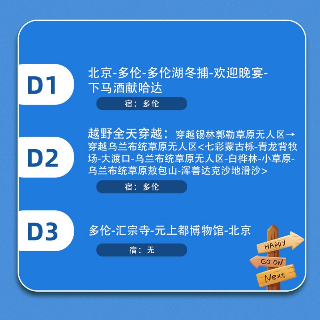 从北京芍药居地铁站清晨7:30集合,仅需数小时车程即可深入内蒙古锡林郭勒与乌兰布统的雪域腹地,完美契合元旦3天小长假节奏。行程安排紧凑合理,D1抵多伦体验冬捕、D2全天越野穿越、D3文化返程,无需额外请假,最大化利用假期时间。特别适合北京及周边城市上班族在年末岁初快速切换工作模式,开启一场说走就走的冰雪差旅度假。