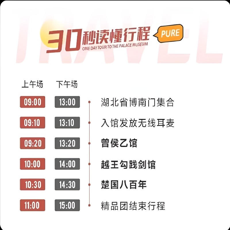 对于注重效率的差旅者而言,时间尤为宝贵。本产品将湖北省博物馆的精华展陈浓缩于2小时讲解中,涵盖历史、艺术、考古等多维度知识,特别适合希望在出差之余进行自我提升的职场人士。讲解内容深入浅出,既有学术深度又不失趣味性,让您在有限时间内获得高价值的文化输入,真正实现“出差即学习”的现代差旅理念。