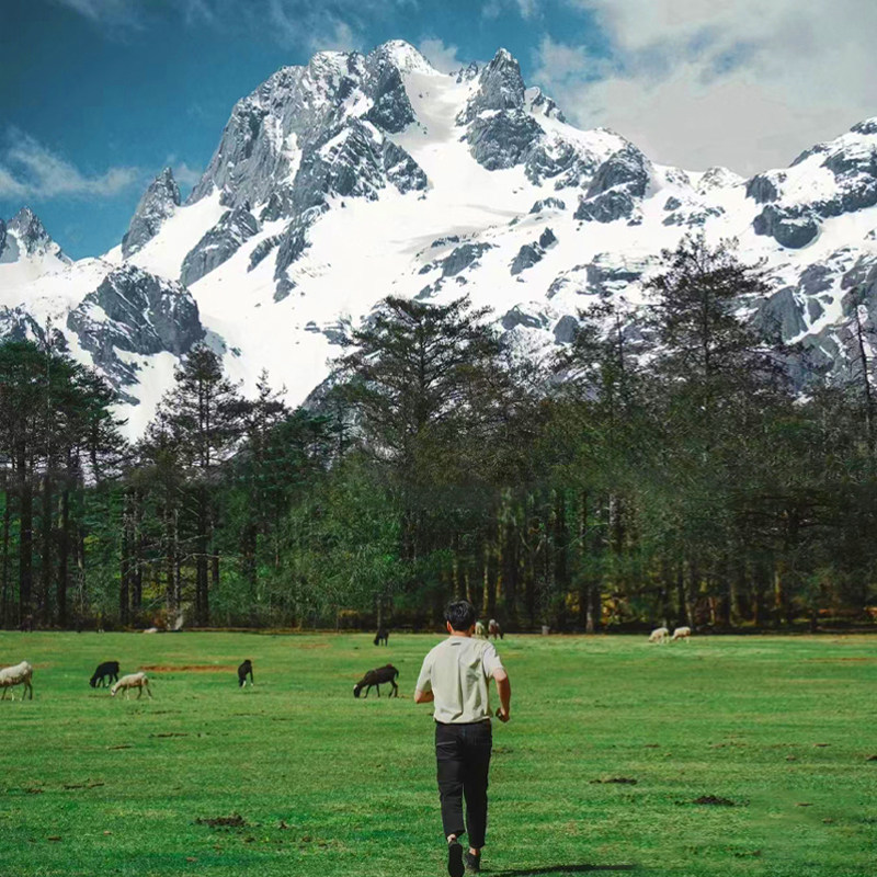 差旅全景视角:云杉坪索道俯瞰玉龙雪山