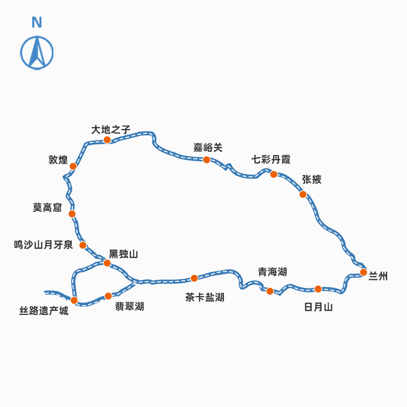 本线路以兰州为起点和终点,形成完整的青甘大环线闭环设计,特别适合差旅人士。无需额外安排返程交通,节省时间与成本。7天6晚的行程节奏张弛有度,既涵盖张掖丹霞、青海湖、敦煌莫高窟等核心景点,又预留充足缓冲时间,便于在公务间隙灵活调整。闭环路线减少中转烦恼,让差旅出行更高效、更省心。