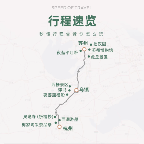本线路特别适合商务差旅人士或独自出行的游客,支持1人单独预订,无需拼团等待。无论您是出差间隙想短暂放松,还是专程来江南度假,都能即订即走,行程安排高度灵活。杭州、乌镇、苏州三地串联,交通衔接顺畅,节省中转时间,让您的差旅与休闲无缝融合,轻松实现工作与旅行的平衡。