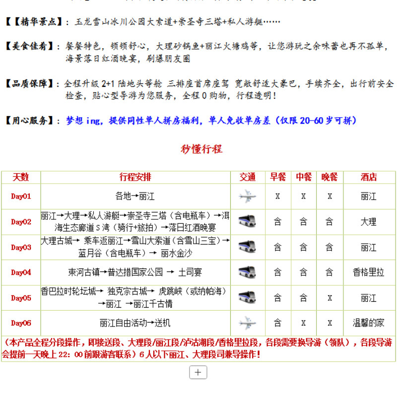 本产品覆盖上海、北京、成都、深圳、杭州、西安等22个国内核心城市出发选项,多数城市每日均有直飞丽江或昆明航班,极大缩短中转时间。差旅结束后,无需舟车劳顿,即可快速开启6天深度度假之旅。行程科学规划,首日抵达即安排接机与轻松游览,避免疲劳叠加,确保您以最佳状态投入后续工作或享受假期,是现代职场人理想的“差旅+休闲”一体化解决方案。