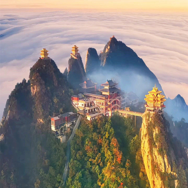 老君山作为伏牛山主峰,拥有被誉为“天下无双圣境,世界第一仙山”的美誉,其金殿群悬于千米绝壁之上,云海翻涌时宛如仙境。对差旅人士而言,这不仅是一次观光,更是一场震撼心灵的视觉盛宴。在短暂假期中收获如此高辨识度的旅行体验,既能丰富个人阅历,也便于社交分享,提升差旅附加价值。