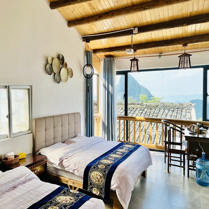 客栈提供多种主题房型,如“旭日阳台房”可观日出、“山趣榻榻米”融入自然、“家庭套房”配备厨房与洗衣机,满足不同差旅需求。尤其对注重体验感的现代职场人而言,住进具有瑶族风情的特色民宿,远比标准化酒店更具记忆点,让差旅不再千篇一律,而是成为值得分享的独特故事。