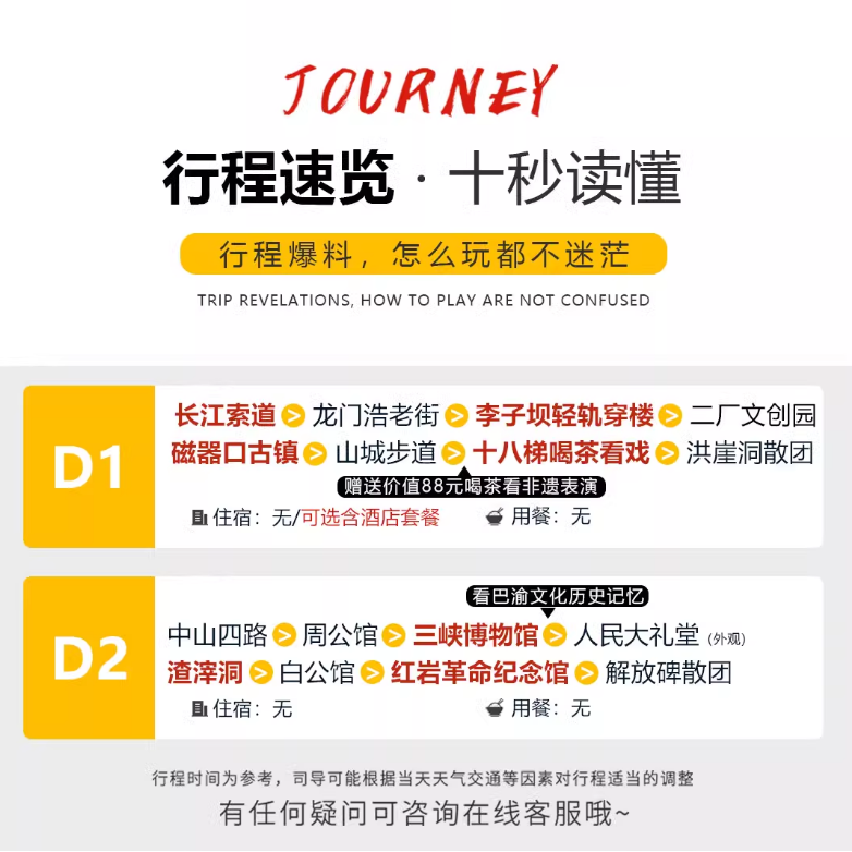 行程覆盖《疯狂的石头》《火锅英雄》等多部热门影视取景地,如洪崖洞、李子坝轻轨站等。差旅之余打卡经典镜头场景,不仅满足个人兴趣,更可成为商务社交中的轻松谈资,拉近客户或同事距离,为专业形象增添生活化魅力。