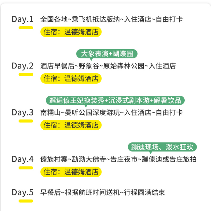采用“一单一团”私家团模式,全程专属导游与车辆服务,避免传统拼团的等待与干扰,特别适合注重时间效率与个人空间的商务旅客。行程节奏可适度调整,既满足深度体验傣族文化的需求,又保留充足休息时间,让您在高强度工作后迅速切换至放松状态。私密性高、服务专属性强,是差旅人群兼顾品质与效率的理想选择。