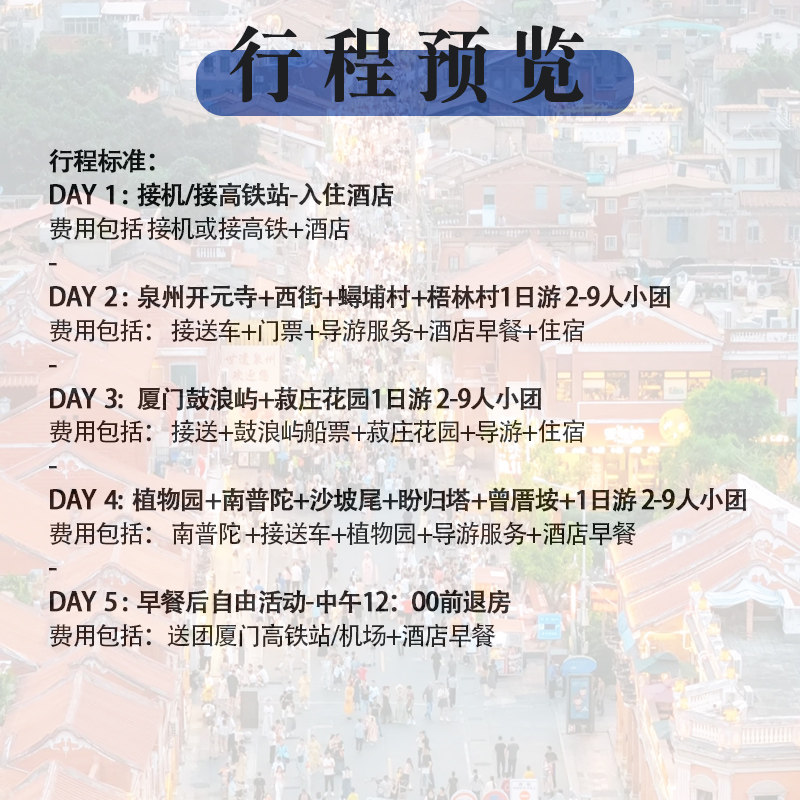差旅无忧:厦门泉州5日小团游支持1人成行,灵活高效