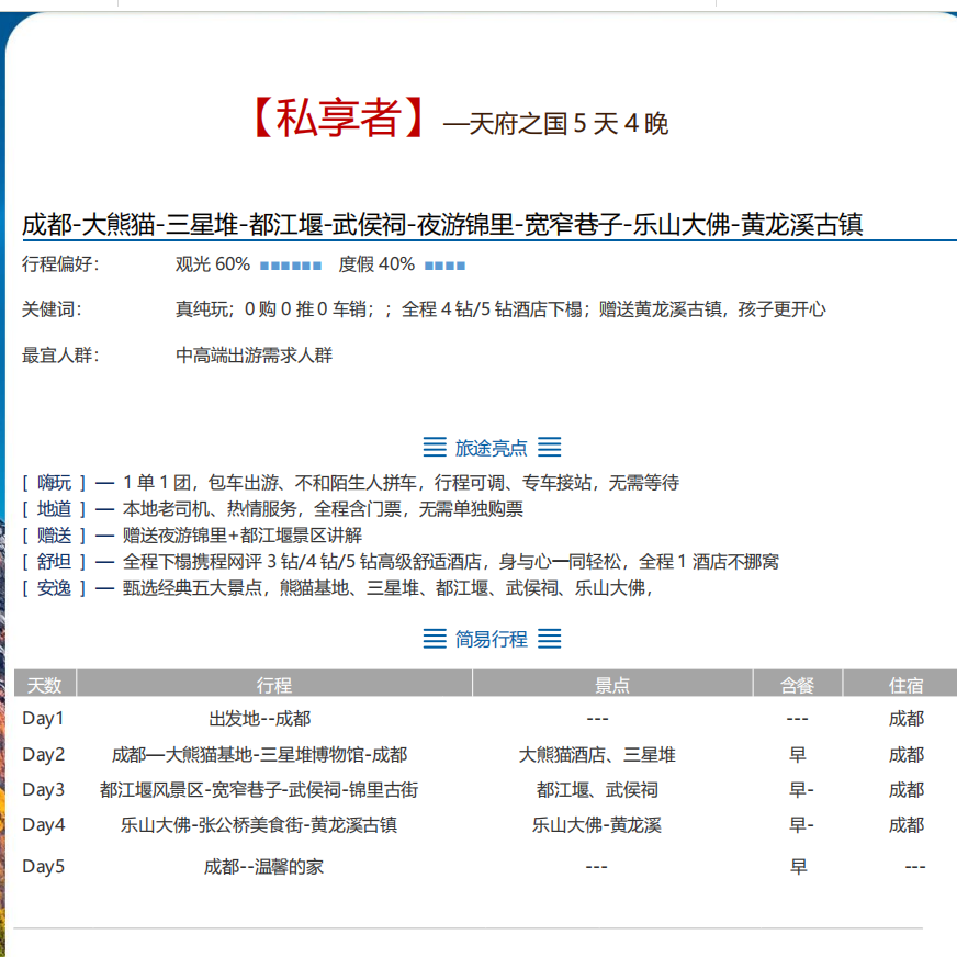 纯玩私家团四川成都旅游5天住4钻 三星堆 乐山大熊猫基地一单一团 - 定制游预订