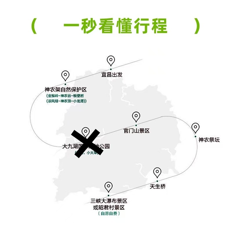 全程在湖北省内完成宜昌—神农架—宜昌闭环,避免跨省奔波带来的额外耗时与手续。交通接驳顺畅,景点间车程合理,最大化利用有限差旅假期,确保5天4晚既能完成公务任务,又能深度体验鄂西山水精华,实现效率与品质双赢。